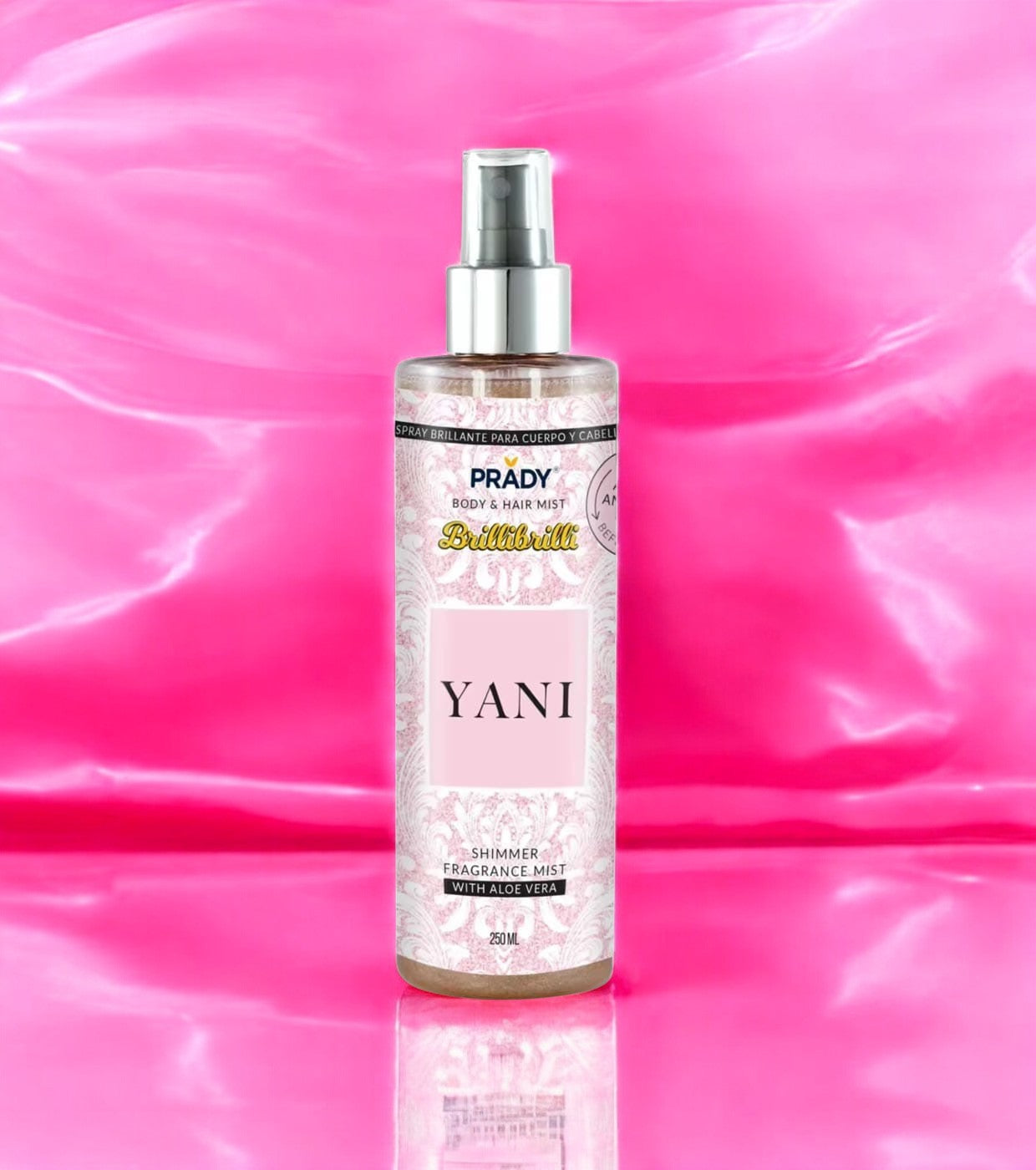 Rinfresca il tuo corpo e i tuoi capelli con YANI brilli brilli, un'acqua scintillante per il corpo e i capelli. Profumo dolce con una delicata nota di vaniglia e un tocco orientale.