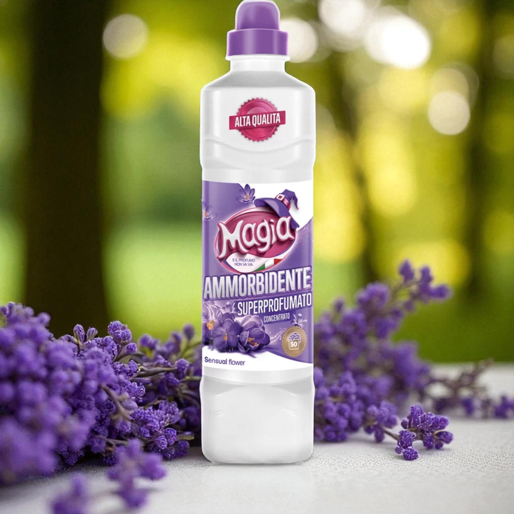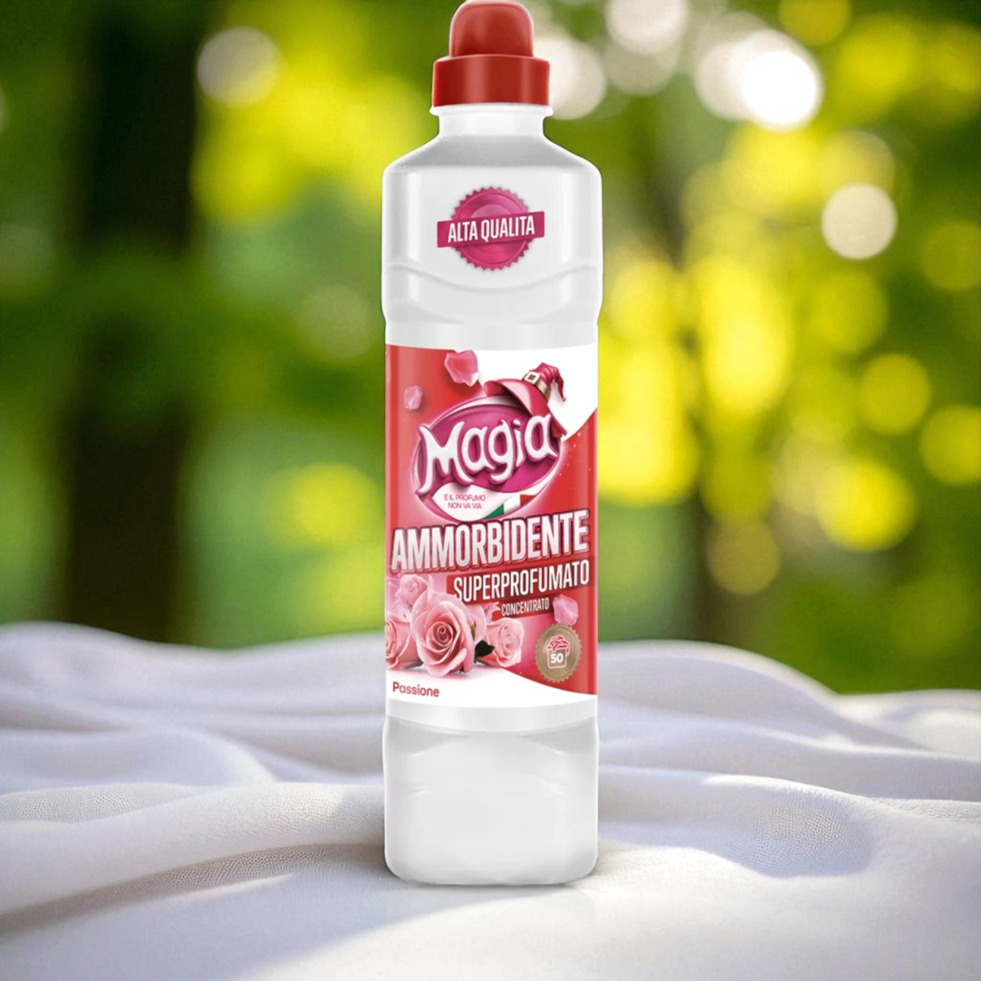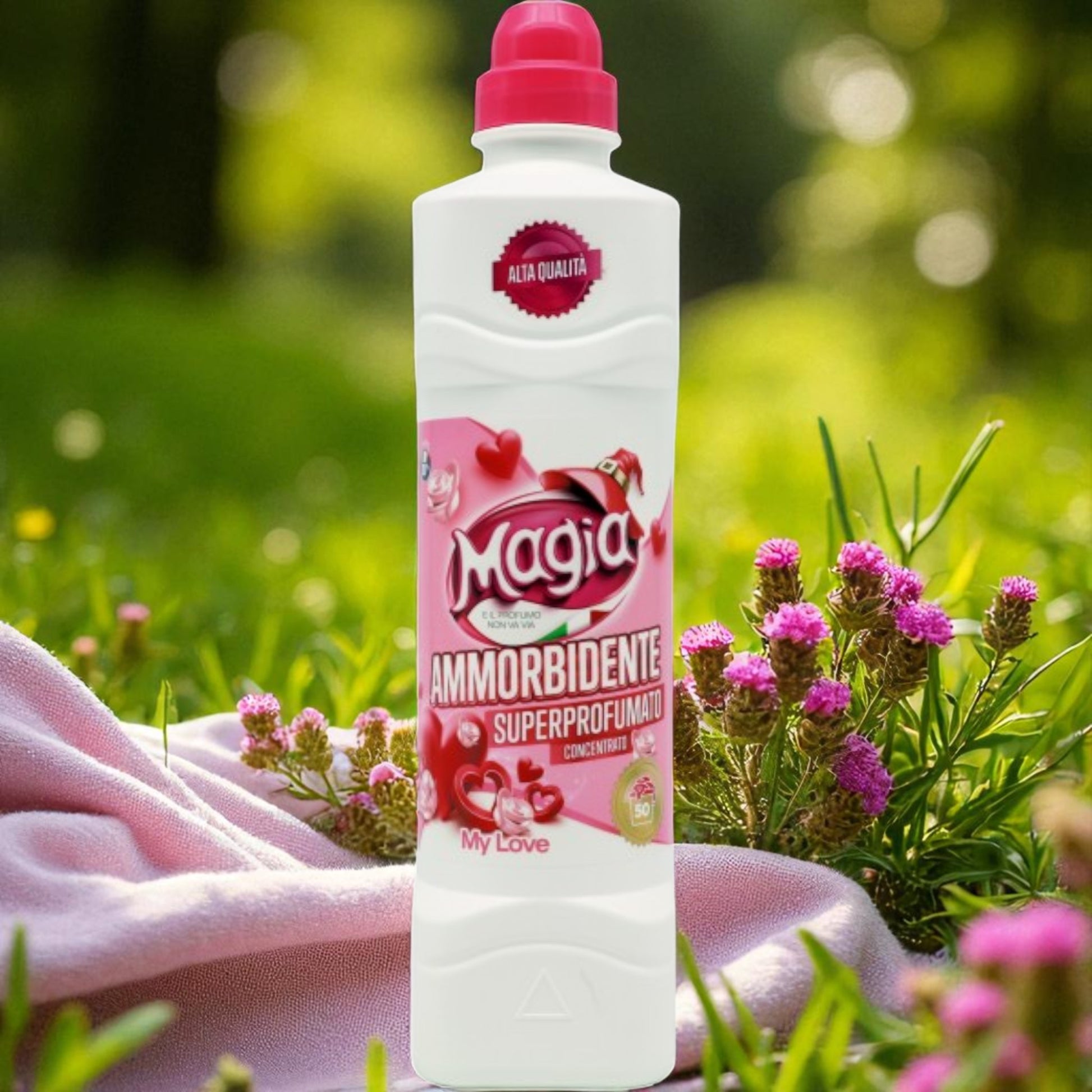 L'Ammorbidente Magia, concentrato con durata fino a 50 lavaggi, è pura armonia per i sensi e per la pelle. Neutralizza gli odori garantendo un profumo di lunga durata e freschezza. Gli ammorbidenti della Linea Magia sono concentrati e i suoi agenti, penetrando in profondità nei tessuti, contribuiscono a mantenerli come nuovi più a lungo.