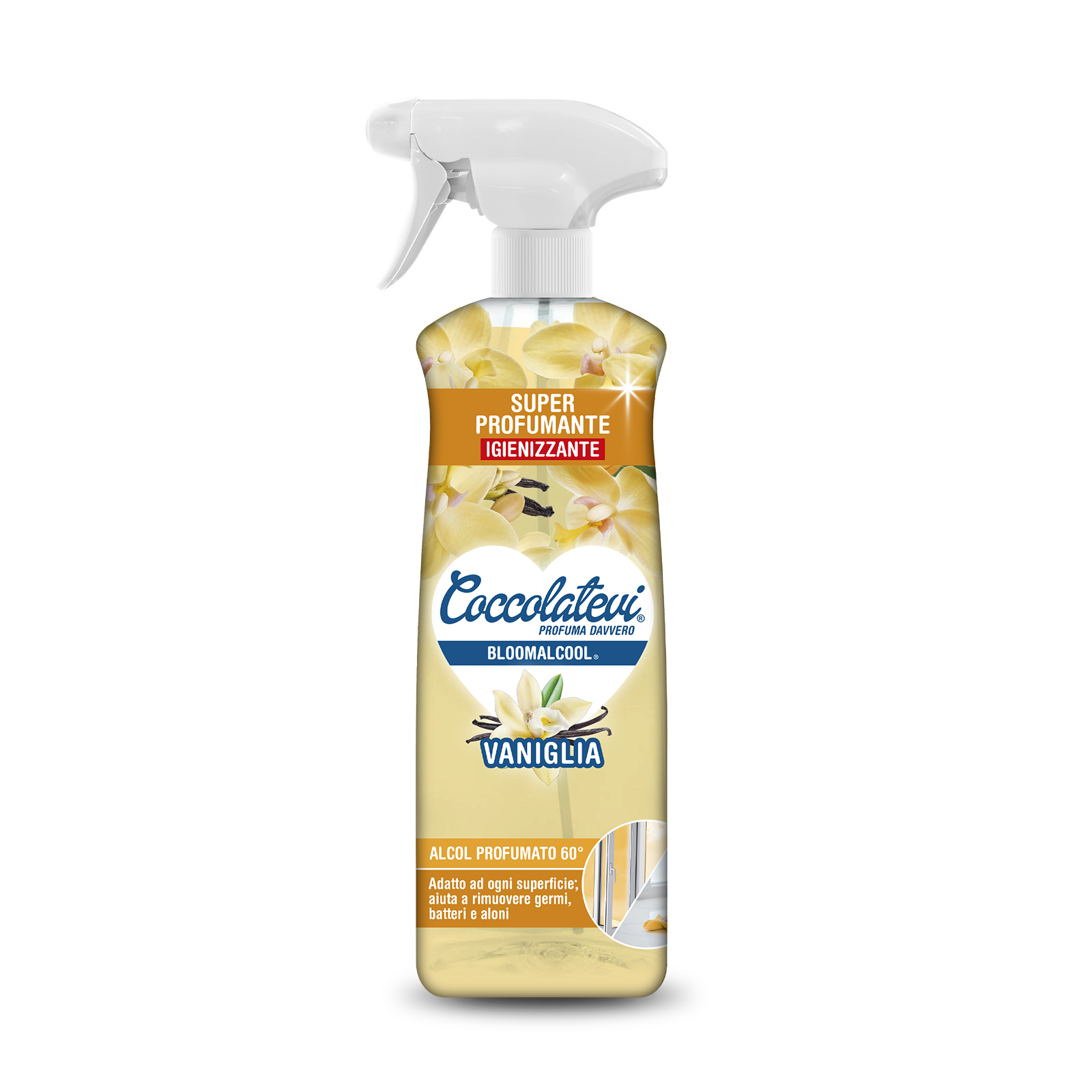 Bloom alcool Coccolatevi pulisce, igienizza e profuma con un solo gesto. A base di alcol etilico a 60°, rimuove germi, aloni e impronte da tutte le superfici lavabili, asciugandosi in pochi istanti senza bisogno di risciacquo. Ideale per casa e ufficio, escluso marmo e superfici porose.
