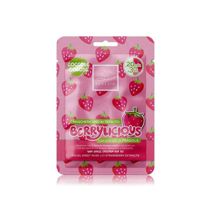 Maschera viso in tessuto biodegradabile , arricchita con estratti naturali che donano idratazione e luminosità.